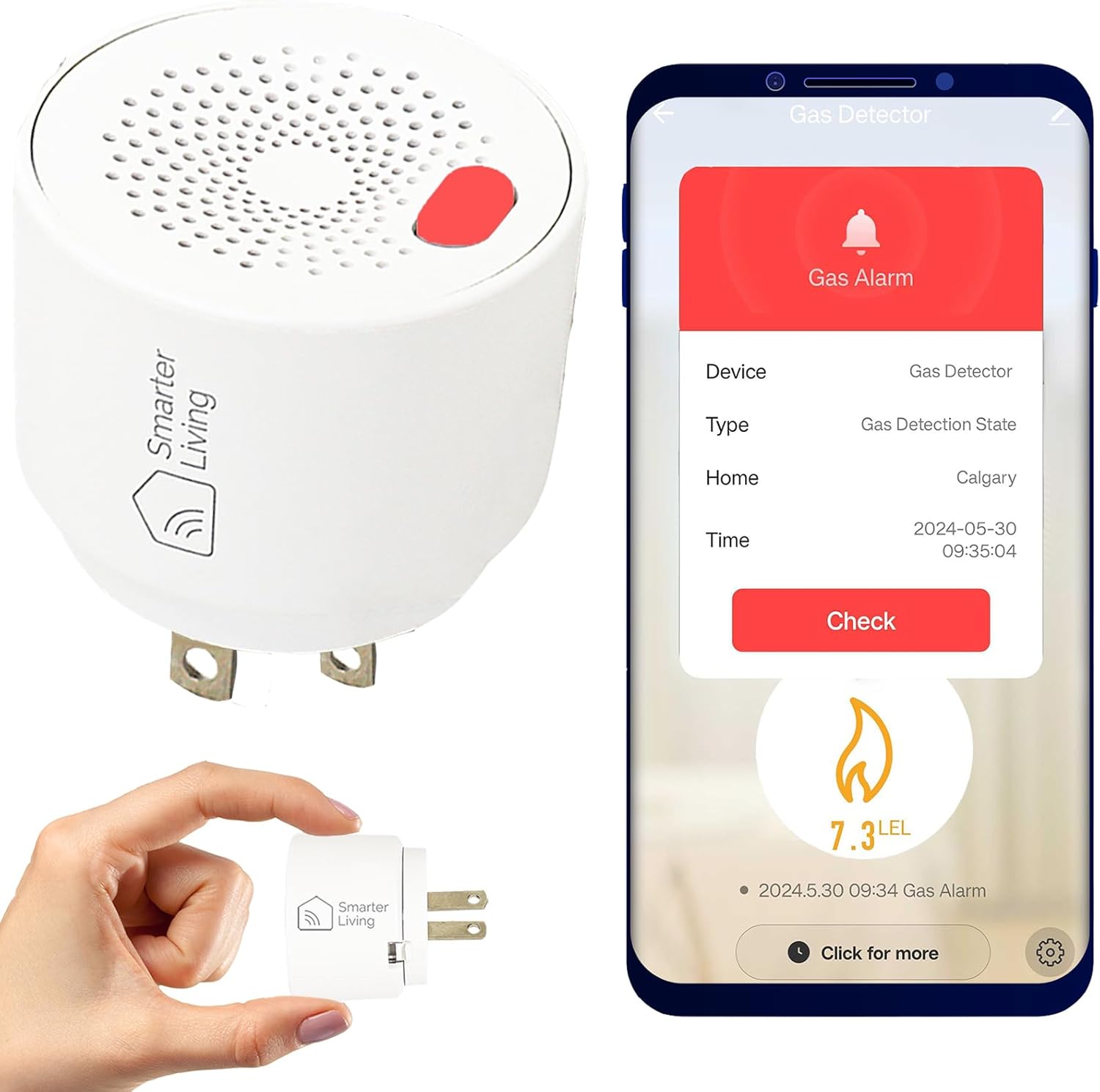 🔔 𝗚𝗔𝗦 𝗟𝗘𝗔𝗞 𝗗𝗘𝗧𝗘𝗖𝗧𝗢𝗥 𝗔𝗡𝗗 𝗔𝗟𝗔𝗥𝗠: Receive instant phone alerts when at home or away, plus a 70db audible alarm on device. Device detects gas leaks for Natural Gas, Propane, Methane, and other combustible gases. Alarm will trigger at a higher sensitivity; 7% LEL (Lower Explosive Limit) vs the UL 1484 standard of 10% LEL to provide more advanced warning. Alarm will sound on device even if the WiFi connection is disconnected.